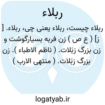 ربلاء. [ رَ] ( ع ص ) زن فربه بسیارگوشت و زن بزرگ رَبَلات. ( ناظم الاطباء ). زن بزرگ رَبَلات. ( منتهی الارب ) ( از اقرب الموارد ). و رجوع به رَبِلة شود. || زن باریک ران خردکُس. ( از ناظم الاطباء ). و رجوع به ربلة شود.