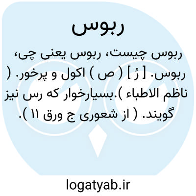 ربوس. [ رُ ] ( ص ) اکول و پرخور. ( ناظم الاطباء ).بسیارخوار که رس نیز گویند. ( از شعوری ج ورق 11 ).