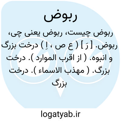 ربوض. [ رَ ] ( ع ص، اِ ) درخت بزرگ و انبوه. ( از اقرب الموارد ). درخت بزرگ. ( مهذب الاسماء ). درخت بزرگ سطبرشاخه ها. ج، رُبُض. ( منتهی الارب ) ( آنندراج ) ( ناظم الاطباء ). || ده بسیاراهل. || زنجیر بزرگ. || زره فراخ. ( منتهی الارب ) ( آنندراج ) ( ناظم الاطباء ) ( از اقرب الموارد ).