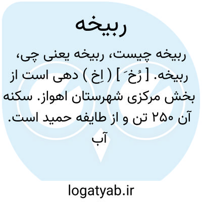 ربیخه. [ رُخ َ ] ( اِخ ) دهی است از بخش مرکزی شهرستان اهواز. سکنه آن 250 تن و از طایفه حمید است. آب آن از چاه. محصول آن غلات است. ( از فرهنگ جغرافیایی ایران ج 6 ).