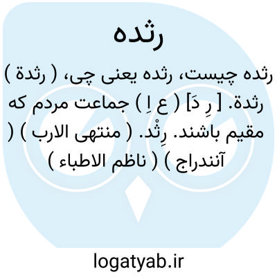 ( رثدة ) رثدة. [ رِ دَ] ( ع اِ ) جماعت مردم که مقیم باشند. رِثْد. ( منتهی الارب ) ( آنندراج ) ( ناظم الاطباء ) ( از اقرب الموارد ).