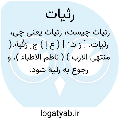 لغت نامه دهخدا رثیات. [ رَ ث َ ] ( ع اِ ) ج ِ رَثْیة.( منتهی الارب ) ( ناظم الاطباء ). و رجوع به رثیة شود.