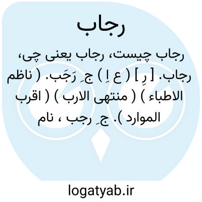 رجاب. [ رِ ] ( ع اِ ) ج ِ رَجَب. ( ناظم الاطباء ) ( منتهی الارب ) ( اقرب الموارد ). ج ِ رجب، نام ماهی. ( آنندراج ). رجوع به رجب شود.