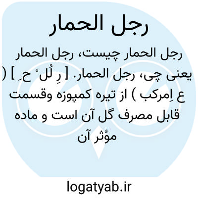 رجل الحمار. [ رِ لُل ْ ح ِ ] ( ع اِمرکب ) از تیره کمپوزه وقسمت قابل مصرف گل آن است و ماده مؤثر آن موسیلاژ، مواد پکتیک میباشد. موارد استعمال: اسپس پکتورال، اسپس وولنه رر. ( از کارآموزی داروسازی جنیدی ص 198 ). حشیشةالسعال. فنجیون. فنجریون. ( یادداشت مرحوم دهخدا ).