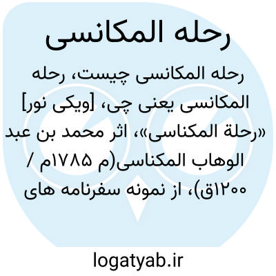 [ویکی نور] «رحلة المکناسی»، اثر محمد بن عبد الوهاب المکناسی(م 1785م / 1200ق)، از نمونه سفرنامه های عربی مربوط به قرن هیجدهم میلادی و حوزه مغرب اسلامی است، مؤلف، سفیر مغرب در آستانه؛ یعنی استانبول بود. از راه مصر به شام و از آن جا به حج رفت.