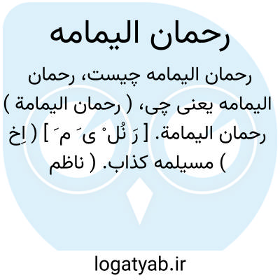 ( رحمان الیمامة ) رحمان الیمامة. [ رَ نُل ْ ی َ م َ ] ( اِخ ) مسیلمه کذاب. ( ناظم الاطباء ) ( منتهی الارب ) ( آنندراج ). رجوع به مسیلمه کذاب شود.