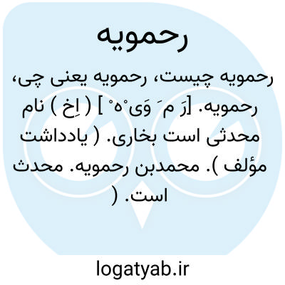 لغت نامه دهخدا رحمویه. [رَ م َ وَی ْه ْ ] ( اِخ ) نام محدثی است بخاری. ( یادداشت مؤلف ). محمدبن رحمویه. محدث است. ( منتهی الارب ).