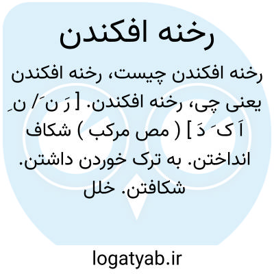 رخنه افکندن. [ رَ ن َ/ ن ِ اَ ک َ دَ ] ( مص مرکب ) شکاف انداختن. به ترک خوردن داشتن. شکافتن. خلل و خرابی رساندن: