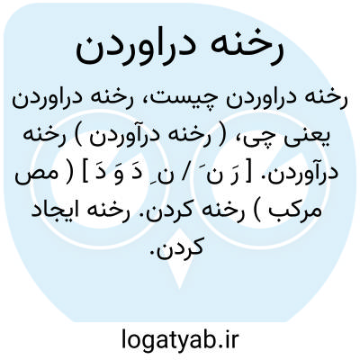 لغت نامه دهخدا ( رخنه درآوردن ) رخنه درآوردن. [ رَ ن َ / ن ِ دَ وَ دَ ] ( مص مرکب ) رخنه کردن. رخنه ایجاد کردن. سوراخ ایجاد کردن. || عیب و نقص در چیزی پیدا آوردن: کان را که تیشه رخنه کند فضل کان نهم رخنه چرا به تیشه کان کن درآورم.خاقانی.