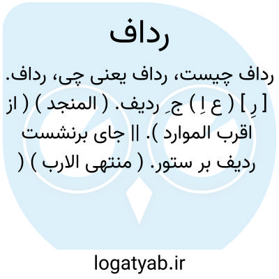 رداف. [ رِ ] ( ع اِ ) ج ِ ردیف. ( المنجد ) ( از اقرب الموارد ). || جای برنشست ردیف بر ستور. ( منتهی الارب ) ( آنندراج ) ( ناظم الاطباء ) ( از اقرب الموارد ). تَرْک. ( یادداشت مؤلف ).