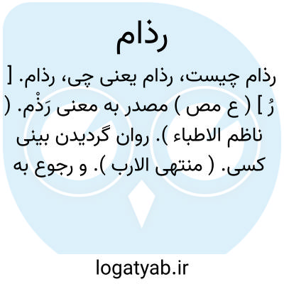 رذام. [ رُ ] ( ع ص، اِ ) نهال خرمابن آماده ٔغرس. ( ناظم الاطباء ). شاخ انگور نشاندنی. ( از اقرب الموارد ) ( از متن اللغة ). || مصاحب رذل و ناکس. ( ناظم الاطباء ). مرد ناکس. ( آنندراج ) ( از منتهی الارب ). || آوند پر و سرشار. ( ناظم الاطباء ). || پول ناسره. ( از متن اللغة ). || روان از هر چیزی. ( آنندراج ) ( از منتهی الارب ).