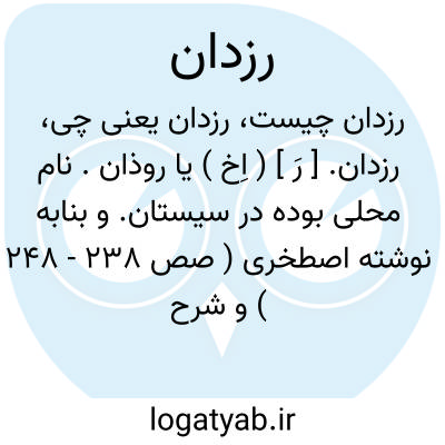 رزدان. [ رَ ] ( اِخ ) یا روذان. نام محلی بوده در سیستان. و بنابه نوشته اصطخری ( صص 238 - 248 ) و شرح شادروان بهار در حاشیه ص 30 تاریخ سیستان باید روذان باشد. رجوع به دو مأخذ بالا شود.