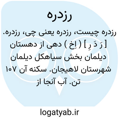 رزدره. [ رَ دَ رِ ] ( اِخ ) دهی از دهستان دیلمان بخش سیاهکل دیلمان شهرستان لاهیجان. سکنه آن 107 تن. آب آنجا از چشمه. محصولات عمده آن غلات و لبنیات است. ( از فرهنگ جغرافیایی ایران ج 2 ).