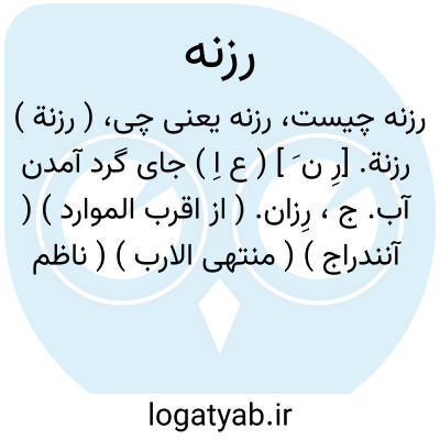 ( رزنة ) رزنة. [رِ ن َ ] ( ع اِ ) جای گرد آمدن آب. ج، رِزان. ( از اقرب الموارد ) ( آنندراج ) ( منتهی الارب ) ( ناظم الاطباء ).