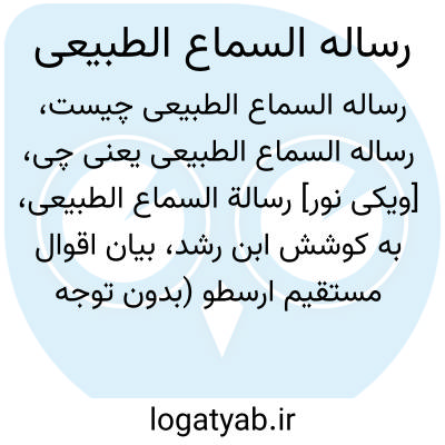 [ویکی نور] رسالة السماع الطبیعی، به کوشش ابن رشد، بیان اقوال مستقیم ارسطو (بدون توجه به نظریات شارحان و اختلافات آنان) در طبیعیات، به هدف روشن‎سازی نظریات اوست. این اثر به زبان عربی نوشته شده است. رفیق عجم و جیرار جهامی کار تحقیق آن را انجام داده‎اند.