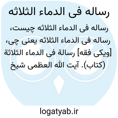 [ویکی نور] رساله فی الدماء الثلاثه (آخوند). رسالة فی الدماء الثلاثه تألیف محمد کاظم بن حسین مشهور به آخوند خراسانی از فقهای بزرگ شیعه در آغاز قرن چهاردهم هجری قمری و از علمای بزرگ حوزه علمیه نجف اشرف. و متوفای سال 1329 هجری قمری.
