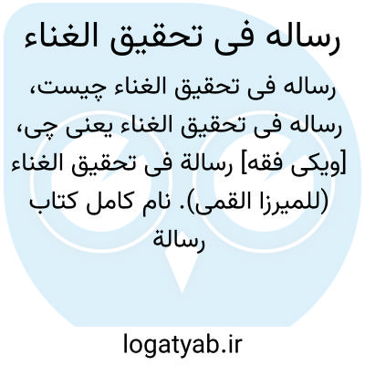 [ویکی فقه] رساله فی تحقیق الغناء (للمیرزا القمی). نام کامل کتاب رسالة فی تحقیق الغناء موضوعا و حکما، عموما او خصوصا نوشته میرزا ابو القاسم بن محمد حسن جیلانی، معروف به محقق قمی و میرزای قمی (۱۱۵۶- ۱۲۳۱ ق) به زبان عربی و در موضوع فقه استدلالی می باشد.