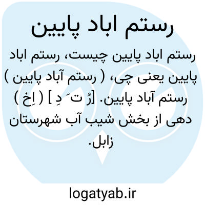 ( رستم آباد پایین ) رستم آباد پایین. [رُ ت َ دِ ] ( اِخ ) دهی از بخش شیب آب شهرستان زابل. سکنه آن 352 تن. آب آن از رودخانه هیرمند. محصولات آنجا غلات و لبنیات. ( از فرهنگ جغرافیایی ایران ج 7 ).