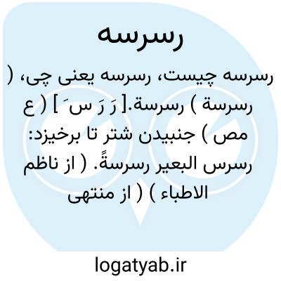 ( رسرسة ) رسرسة.[ رَ رَ س َ ] ( ع مص ) جنبیدن شتر تا برخیزد: رسرس البعیر رسرسةً. ( از ناظم الاطباء ) ( از منتهی الارب ) ( از آنندراج ). جنبیدن شتر برای برخاستن، و آن لغتی است در رصرصة. ( از اقرب الموارد ). و رجوع به رصرصة شود.