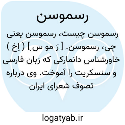 رسموسن. [ رَ مو س ِ] ( اِخ ) خاورشناس دانمارکی که زبان فارسی و سنسکریت را آموخت. وی درباره تصوف شعرای ایران بویژه حافظ نوشته هایی دارد. او تعدادی از نصوص هندی را به زبان دانمارکی نقل کرده است. ولادت او به سال 1853م. بوده است. ( از اعلام المنجد ).