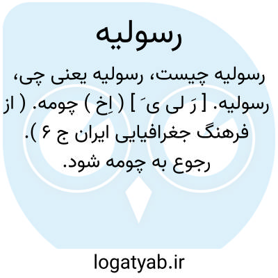 رسولیه. [ رَ لی ی َ ] ( اِخ ) چومه. ( از فرهنگ جغرافیایی ایران ج 6 ). رجوع به چومه شود.