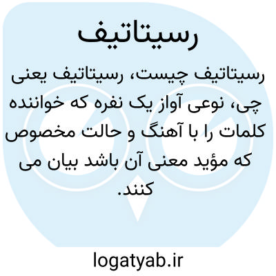 در اپرا و اوراتوریو، روایتی آوازی که تا حدی برمبنای الگوهای ضرباهنگ و فراز و فرودهای گفتار طبیعی شکل گرفته است. رسیتاتیف معمولاً با همراهی مختصر و مفید هارپسیکورد یا ارگ اجرا می شود.
