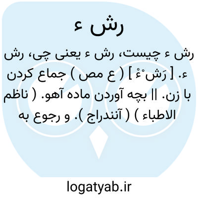 رش ء. [ رَش ْءْ ] ( ع مص ) جماع کردن با زن. || بچه آوردن ماده آهو. ( ناظم الاطباء ) ( آنندراج ). و رجوع به رشاء شود.