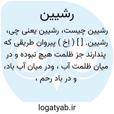 رشیین. [ ] ( اِخ ) پیروان طریقی که پندارند جز ظلمت هیچ نبوده و در میان ظلمت آب، ودر میان آب باد، و در باد رحم، و در رحم مشیمه، و در مشیمه بیضه، و در بیضه آب زنده و در آب زنده پسر بزرگ زندگان، و این پسر بسوی بلندی رفته، زمین و آسمانها و اشیاء زمینی و خدایان را خلقت کرده بازگشت، گویند پدرش هیچ خبر نداشت. ( از الفهرست ابن الندیم ).