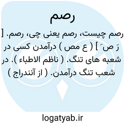 رصم. [ رَ ص َ ] ( ع مص ) درآمدن کسی در شعبه های تنگ. ( ناظم الاطباء ). در شعب تنگ درآمدن. ( از آنندراج ) ( منتهی الارب ) ( از اقرب الموارد ).