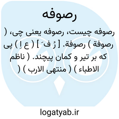 ( رصوفة ) رصوفة. [ رُ ف َ ] ( ع اِ ) پی که بر تیر و کمان پیچند. ( ناظم الاطباء ) ( منتهی الارب ) ( آنندراج ). || ( اِمص ) پایداری و استواری. رصافة. ( از اقرب الموارد ). رجوع به رصافة شود.