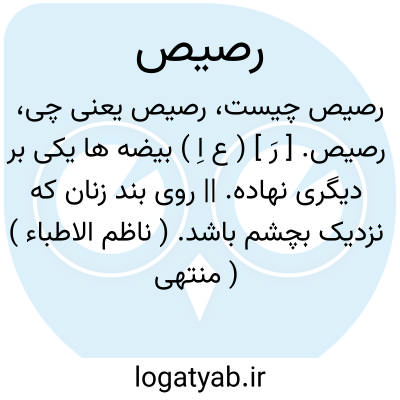 لغت نامه دهخدا رصیص. [ رَ ] ( ع اِ ) بیضه ها یکی بر دیگری نهاده. || روی بند زنان که نزدیک بچشم باشد. ( ناظم الاطباء ) ( منتهی الارب ) ( آنندراج ) ( از اقرب الموارد ).