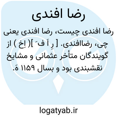 رضاافندی. [ رِ اَ ف َ ]( اِخ ) از گویندگان متأخر عثمانی و مشایخ نقشبندی بود و بسال 1159 هَ. ق. درگذشت. کتاب «مختصر الولایه »را بترکی ترجمه کرده است. ( از قاموس الاعلام ترکی ).