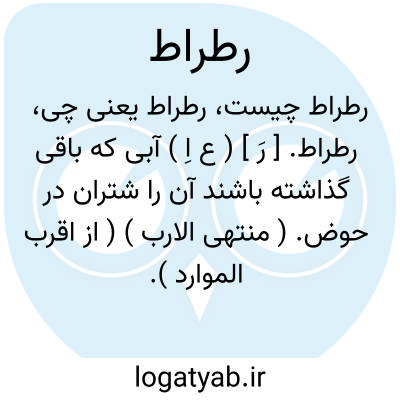 رطراط. [ رَ ] ( ع اِ ) آبی که باقی گذاشته باشند آن را شتران در حوض. ( منتهی الارب ) ( از اقرب الموارد ).