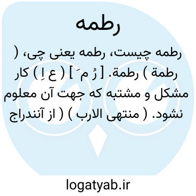 ( رطمة ) رطمة. [ رُ م َ ] ( ع اِ ) کار مشکل و مشتبه که جهت آن معلوم نشود. ( منتهی الارب ) ( از آنندراج ) ( از اقرب الموارد ).