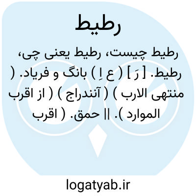 رطیط. [ رَ ] ( ع اِ ) بانگ و فریاد. ( منتهی الارب ) ( آنندراج ) ( از اقرب الموارد ). || حمق. ( اقرب الموارد ). || ( ص ) مرد گول. ج، رِطاط، رَطائِط. ( منتهی الارب ) ( آنندراج ) ( از اقرب الموارد ).