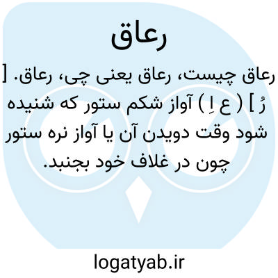 رعاق. [ رُ ] ( ع اِ ) آواز شکم ستور که شنیده شود وقت دویدن آن یا آواز نره ستور چون در غلاف خود بجنبد. ( منتهی الارب ) ( آنندراج ) ( از اقرب الموارد ).