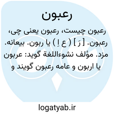 رعبون. [ رَ ] ( ع اِ ) یا ربون. بیعانه. مزد. مؤلف نشوءاللغة گوید: عربون یا اربون و عامه رعبون گویند و برخی از فصیحان با حذف حرف اول [ربون ] گفته اند. ( از نشوءاللغةص 92 ). رجوع به ربون ( در معنی بیعانه و مزد ) شود.