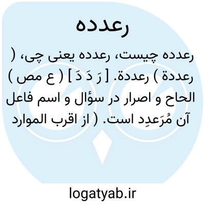 لغت نامه دهخدا ( رعددة ) رعددة. [ رَ دَ دَ ] ( ع مص ) الحاح و اصرار در سؤال و اسم فاعل آن مُرَعدِد است. ( از اقرب الموارد ).