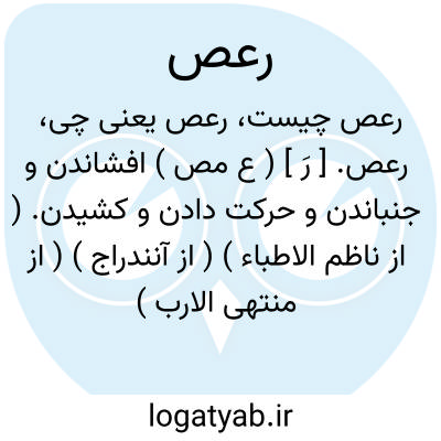 رعص. [ رَ ] ( ع مص ) افشاندن و جنباندن و حرکت دادن و کشیدن. ( از ناظم الاطباء ) ( از آنندراج ) ( از منتهی الارب ) ( از اقرب الموارد ). || پریدن پوست بدن. ( از اقرب الموارد ). مورمور شدن پوست بدن.