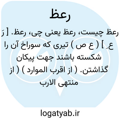 رعظ. [ رَ ع ِ ] ( ع ص ) تیری که سوراخ آن را شکسته باشند جهت پیکان گذاشتن. ( از اقرب الموارد ) ( از منتهی الارب ) ( ناظم الاطباء ).
