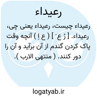 رعیداء. [ رُ ع َ ] ( ع اِ ) آنچه وقت پاک کردن گندم از آن برآید و آن را دور کنند. ( منتهی الارب ). آنچه از طعام هنگام پاک کردن دور ریزند و اصح آن رُغیداء، با غین است. ( از اقرب الموارد ).