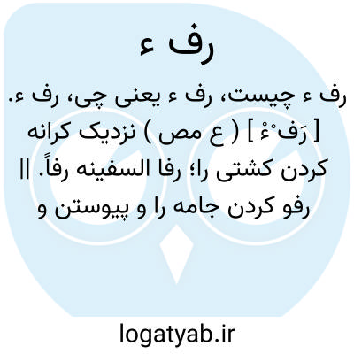 رف ء. [ رَف ْءْ ] ( ع مص ) نزدیک کرانه کردن کشتی را؛ رفا السفینه رفاً. || رفو کردن جامه را و پیوستن و نیکو کردن دریدگی و بریدگی آن را؛ رفا الثوب. و یقال: من اغتاب خرق و من استغفر رفاً. ( منتهی الارب ) ( ناظم الاطباء ). پیوستن و نیکو کردن بریدگی و دریدگی جامه و غیرهم.( مهذب الاسماء ). رفو کردن. ( تاج المصادر بیهقی ). رفوکردن جامه را و دوختن و پیوستن قسمتی از آن به قسمت دیگر. ( از اقرب الموارد ). رفو کردن جامه را و پیوست و نیکو کردن دریدگی و بریدگی جامه را. ( آنندراج ).