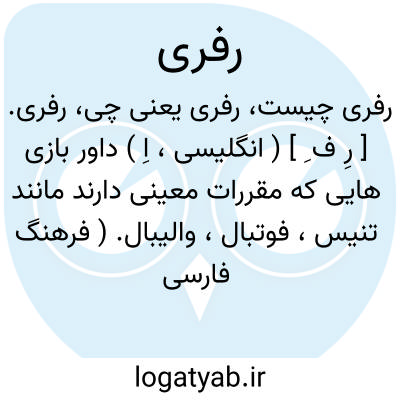 رفری. [ رِ ف ِ ] ( انگلیسی، اِ ) داور بازی هایی که مقررات معینی دارند مانند تنیس، فوتبال، والیبال. ( فرهنگ فارسی معین ).