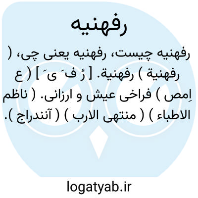 ( رفهنیة ) رفهنیة. [ رُ ف َ ی َ ] ( ع اِمص ) فراخی عیش و ارزانی. ( ناظم الاطباء ) ( منتهی الارب ) ( آنندراج ). رفغنیة. ( از یادداشت مؤلف ). رفاهیت. ( اقرب الموارد ). رجوع به رفغنیة شود.