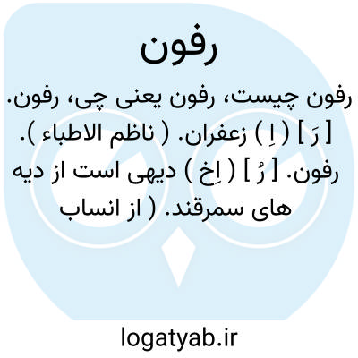رفون. [ رُ ] ( اِخ ) دیهی است از دیه های سمرقند. ( از انساب سمعانی ).