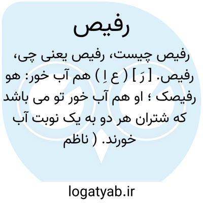 رفیص. [ رَ ] ( ع اِ ) هم آب خور: هو رفیصک؛ او هم آب خور تو می باشد که شتران هر دو به یک نوبت آب خورند. ( ناظم الاطباء ) ( منتهی الارب ) ( آنندراج ).هم آبخور: هو رفیصک؛ ای شریکک. ( از اقرب الموارد ).