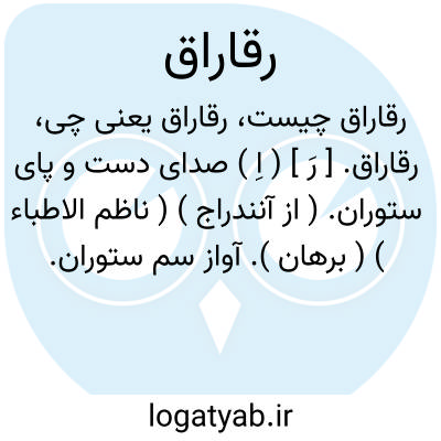 رقاراق. [ رَ ] ( اِ ) صدای دست و پای ستوران. ( از آنندراج ) ( ناظم الاطباء ) ( برهان ). آواز سم ستوران. ( لغت محلی شوشتر نسخه خطی کتابخانه مؤلف ).