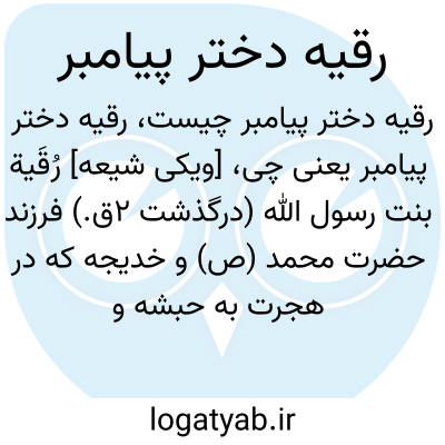 [ویکی شیعه] رقیه دختر پیامبر (ص). رُقَیة بنت رسول الله (درگذشت ۲ق.) فرزند حضرت محمد (ص) و خدیجه. نخست با عتبه فرزند ابولهب ازدواج کرد اما با نزول آیه «تبت یدا»، از او جدا شد و به ازدواج عثمان بن عفان درآمد. وی در هجرت به حبشه و هجرت به مدینه حضور داشت. رقیه در سال دوم هجری درگذشت و در قبرستان بقیع به خاک سپرده شد.