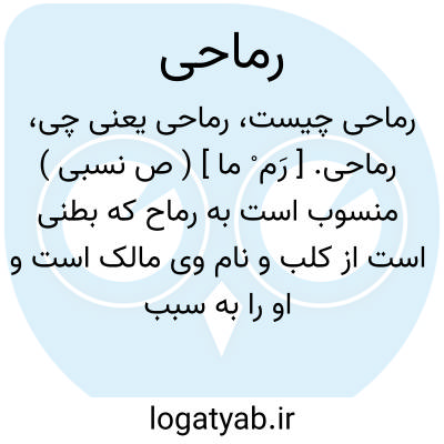 رماحی. [ رَم ْ ما ] ( ص نسبی ) منسوب است به رماح که بطنی است از کلب و نام وی مالک است و او را به سبب درازی پاهایش مالک الرماح نامیدند. ( از انساب سمعانی ). رجوع به انساب شود.