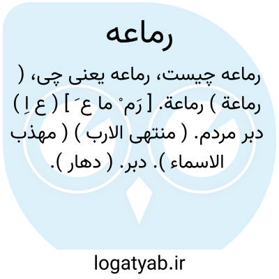 ( رماعة ) رماعة. [ رَم ْ ما ع َ ] ( ع اِ ) دبر مردم. ( منتهی الارب ) ( مهذب الاسماء ). دبر. ( دهار ). اِست. ( اقرب الموارد ). کون. || طاسک سر و روزنک سر. ( دهار ). آنجای از سر کودک که می جنبد. ( منتهی الارب ). آنجا که می جنبد از یافوخ کودک. ( از اقرب الموارد ). تار سر یعنی موضعی در سر که بطفلی نرم و جهنده باشد. بهندی مالو نامند. ( غیاث اللغات ). تارک سر.